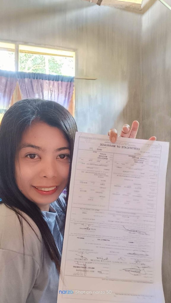 On my arrival in Philippine, I meet Juliet with some of her friend. I did not recognize her at first, Juliet was more beautiful face to face than our video call. For both of us it was love in first sight. We stay together with her family and alone for 2 weeks . The best time of my life. We talk about getting married as i did not wanted to lose her. Long distance relationship would not last. If married I would have to fight for out together forever. We find a priest willing to married us as long as I send all papers work needed in 3 weeks after the marriage. We got married on 30 November 2022.. My wife and her family manage to organise everything in 2 days . A magical day. The next day I fly back to UK Scotland . Now 16 months after, we talk, video call almost everyday.
